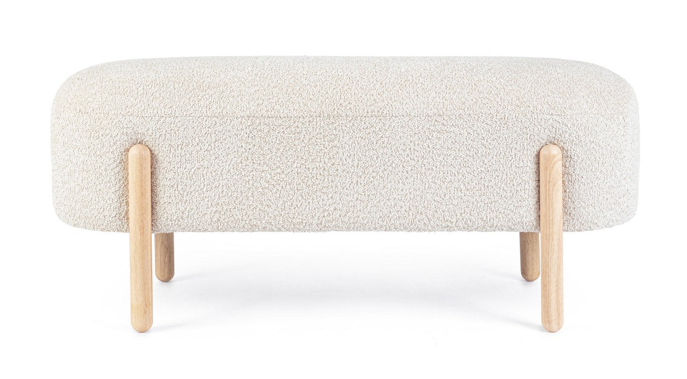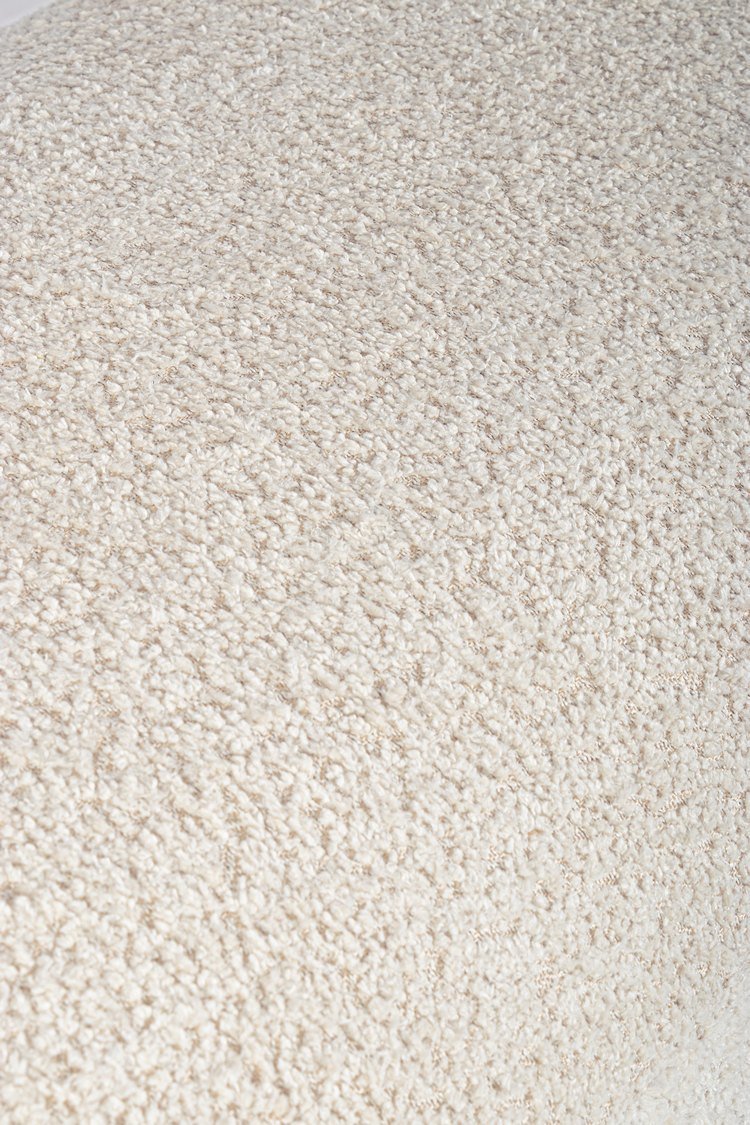 Offre una seduta confortevole rivestita in tessuto naturale effetto bouclé, risultando morbida e piacevole al tatto.