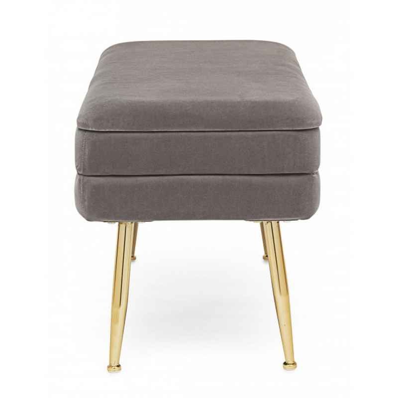 La panca contenitore PAVLINA grigia unisce eleganza e funzionalità in un complemento d’arredo versatile.