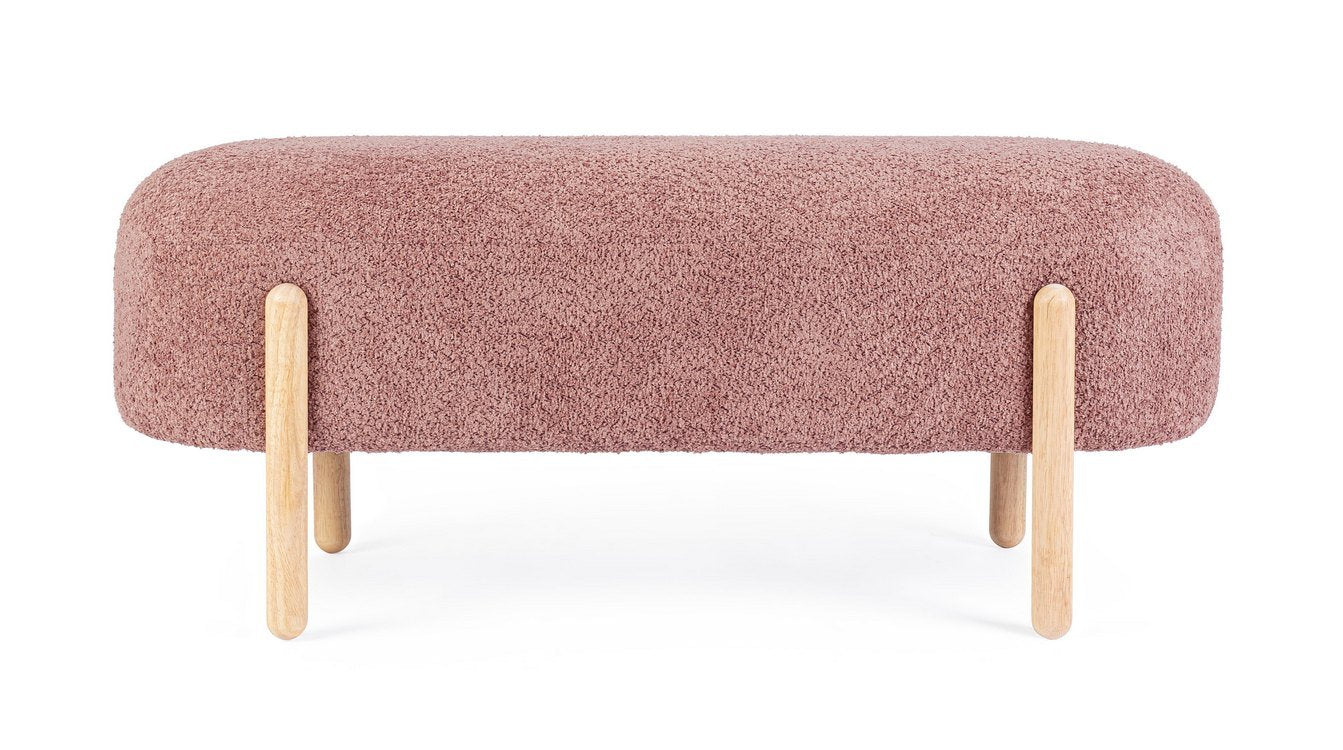 Offre una seduta confortevole rivestita in tessuto colore rosa scuro, effetto bouclé, risultando morbida e piacevole al tatto.