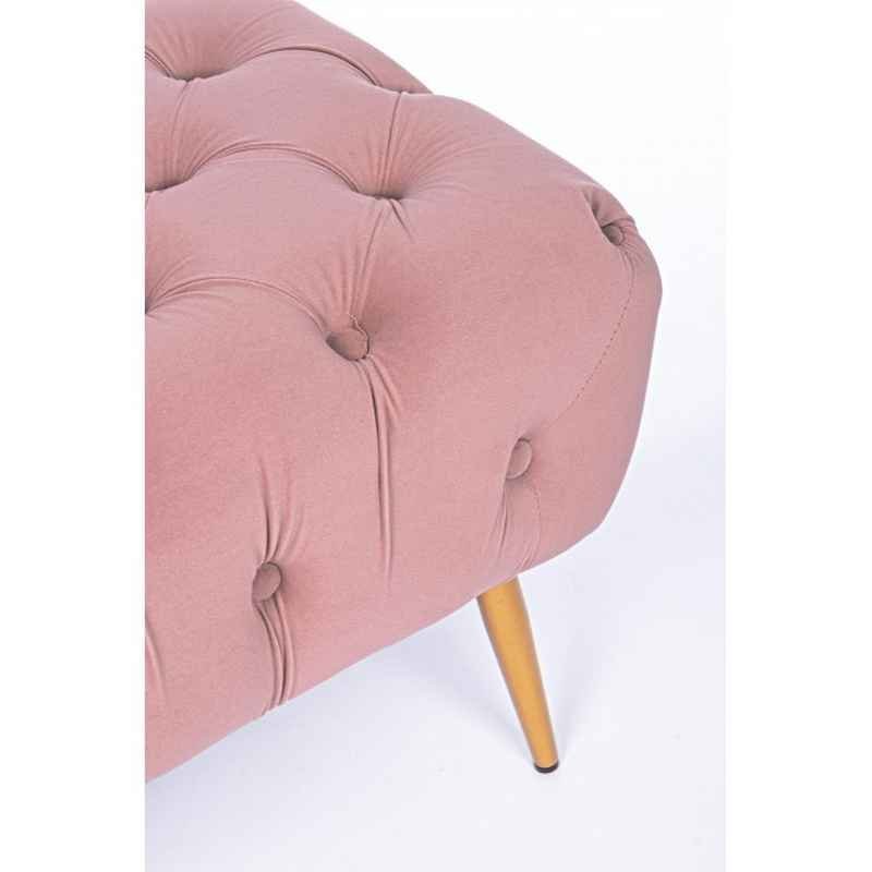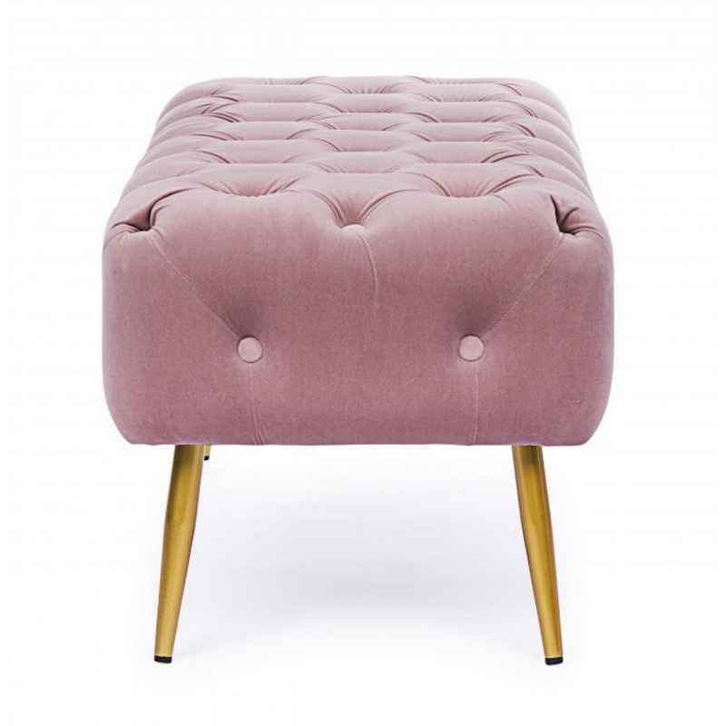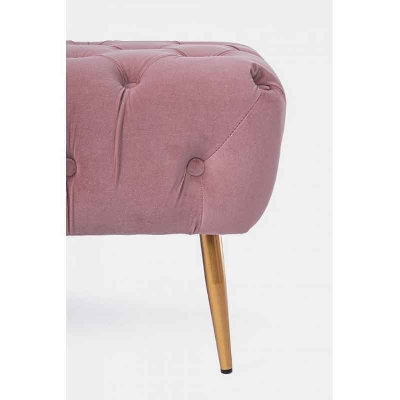 Confortevole panca con struttura in MDF e legno compensato, imbottitura rivestita in stoffa di poliestere 100% effetto velluto e larorazione capitonnè, gambe in acciaio verniciato a polvere epossidica.