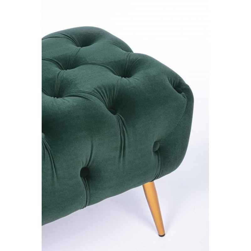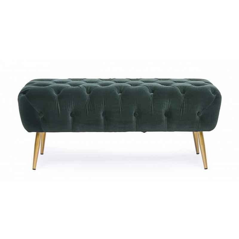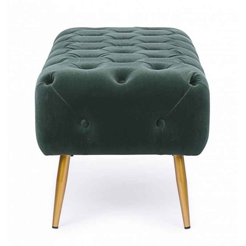 Confortevole panca con struttura in MDF e legno compensato, imbottitura rivestita in stoffa di poliestere 100% effetto velluto e larorazione capitonnè, gambe in acciaio verniciato a polvere epossidica.