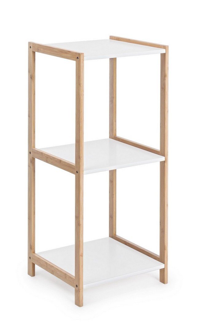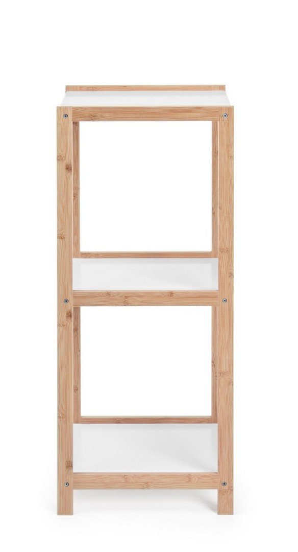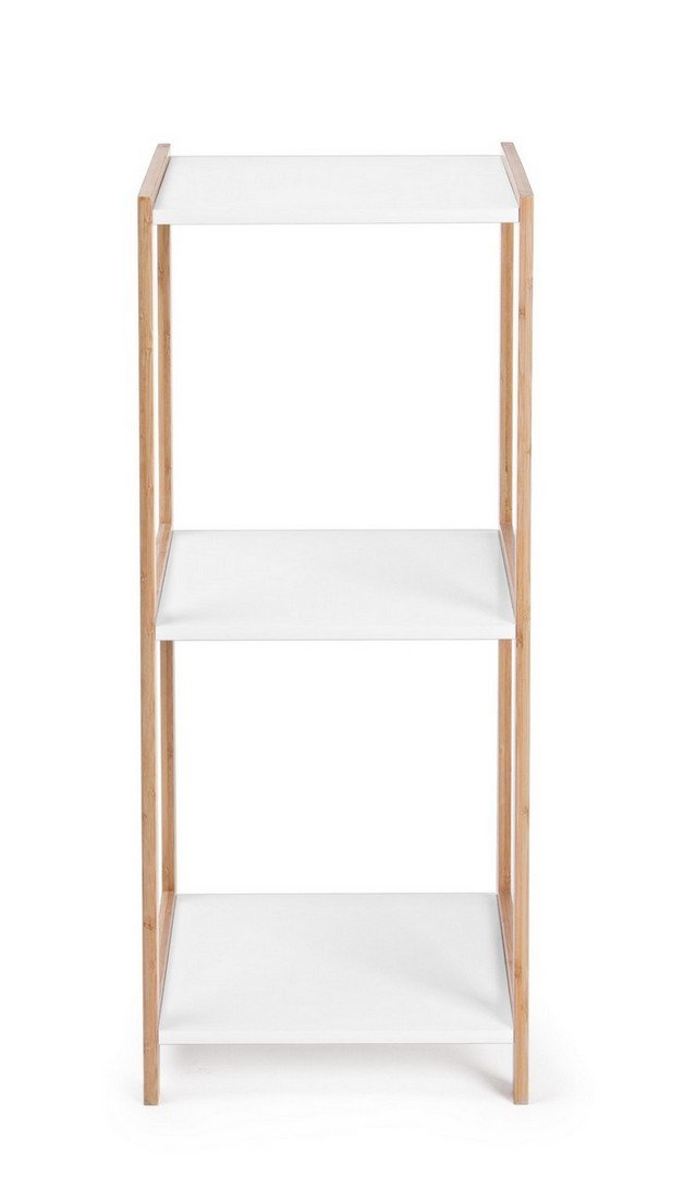 Composizione: la struttura è in legno di bambù naturale, i ripiani in legno nobilitato laccati di bianco, effetto opaco.