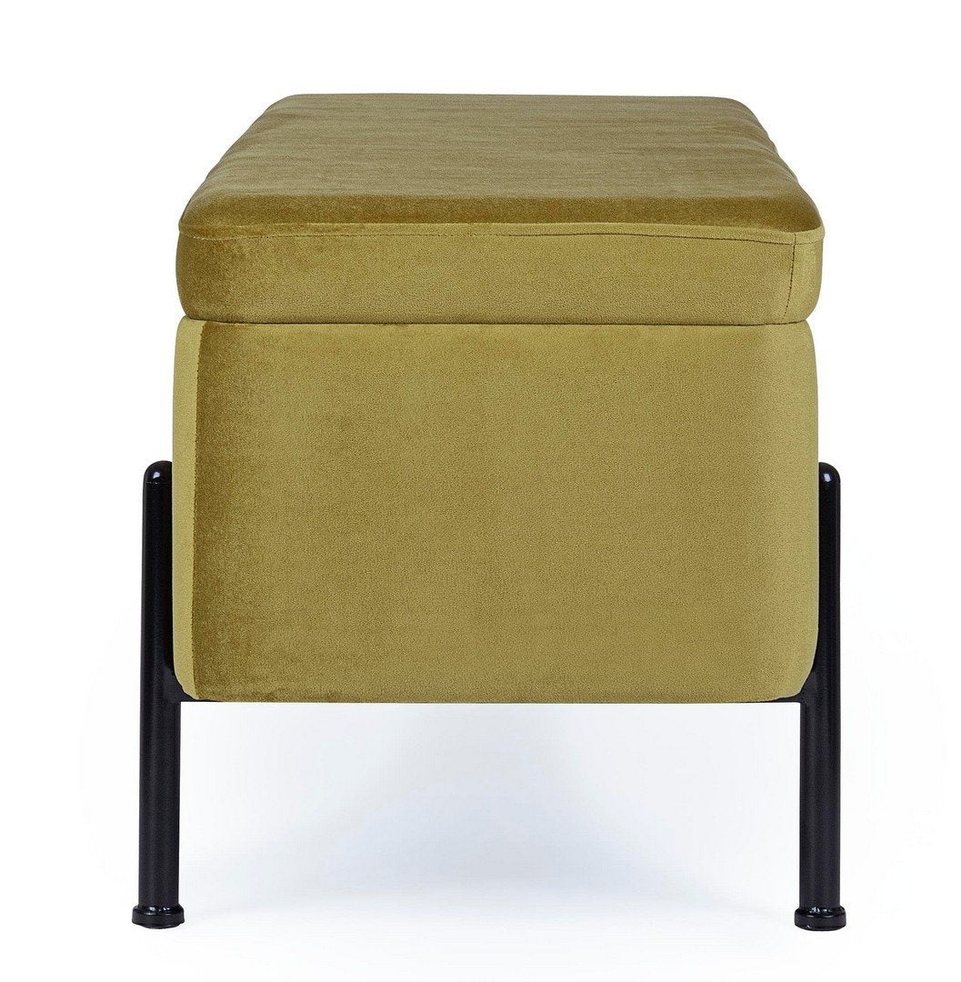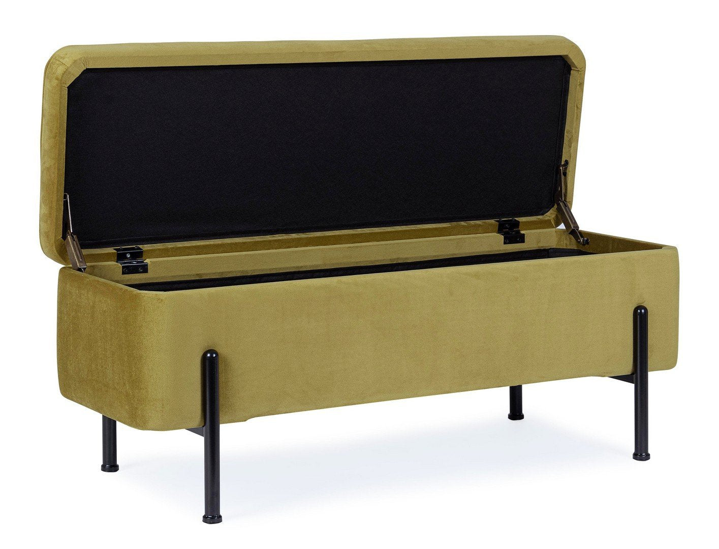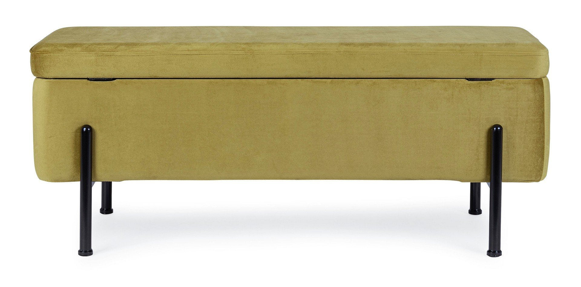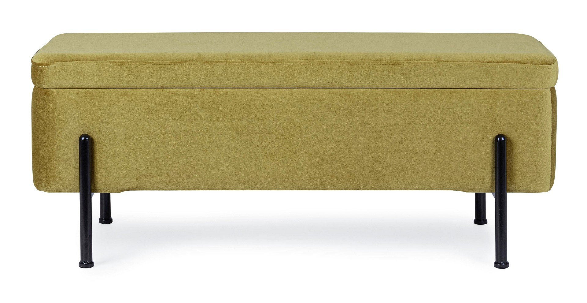 Panca contenitore IRINA coniuga la versatilità a uno stile elegante e raffinato. La sua struttura è in legno nobilitato, rivestimento in poliestere effetto velluto, le gambe in acciaio verniciato nero. Puoi utilizzare la panca KIRA come complemento d’arredo oppure trasformarla in un comodo contenitore-scrigno alzando il coperchio da un lato. Ideale per l’ingresso di casa, il soggiorno e la camera da letto oppure per studi professionali e uffici.