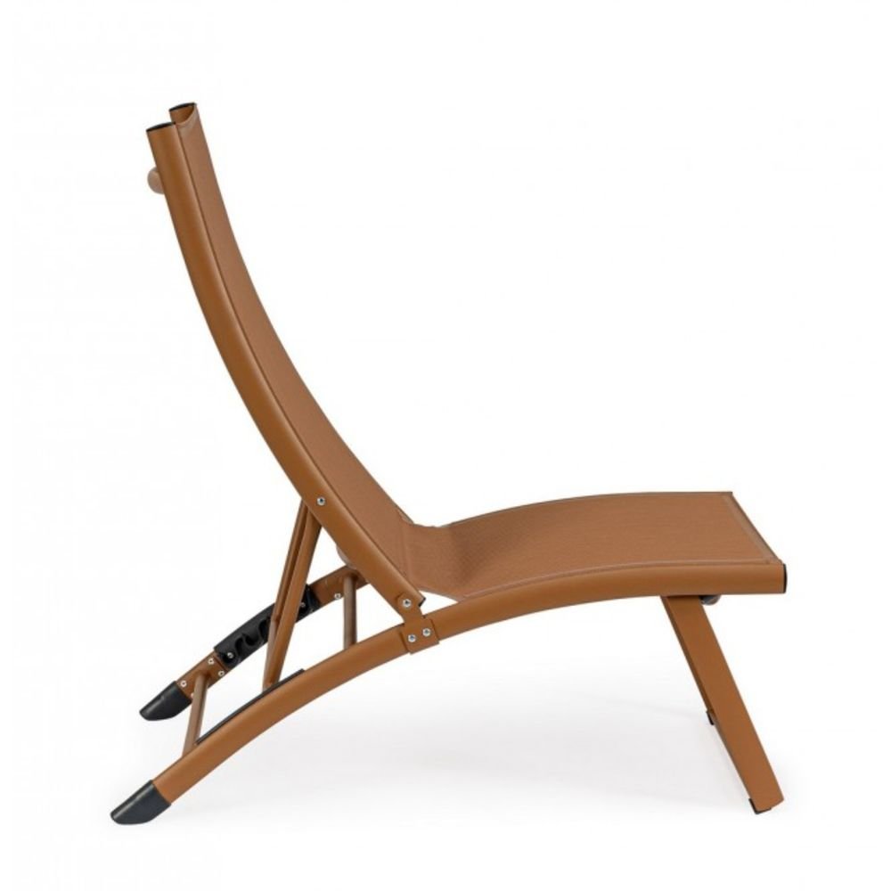 Realizzata con una struttura in alluminio ruggine, offre leggerezza e al tempo stesso resistenza. La seduta e lo schienale sono in textilene, di colore ruggine, una fibra eccezionale che garantisce tenuta contro usura e resistenza agli agenti atmosferici, rendendola ideale per l’uso esterno.
