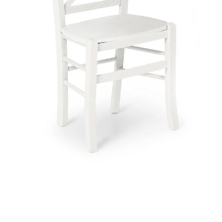 Set di 2 sedie in legno massello con seduta in legno liscio e schienale a X ispirata ad un modello classico, massello laccato bianco opaco. Questa sedia si adatta facilmente a molteplici stili di arredamento e diversi ambienti, come cucina, sala da pranzo e soggiorno.
